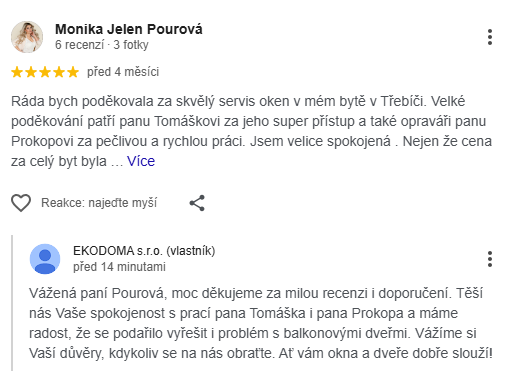 Děkujeme za servis na našich oknech.