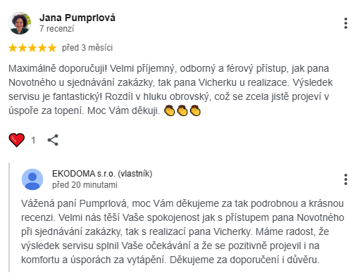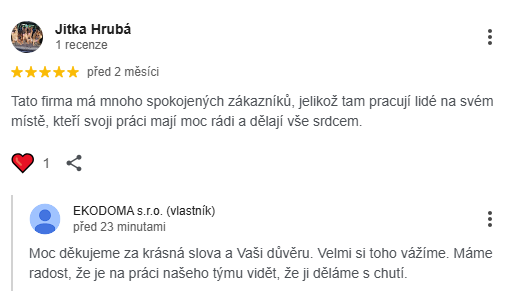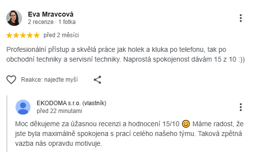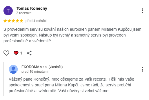 (seřízení). S prací obou zaměstnanců EKODOMA s.r.o a tedy firmou jsem spokojen.